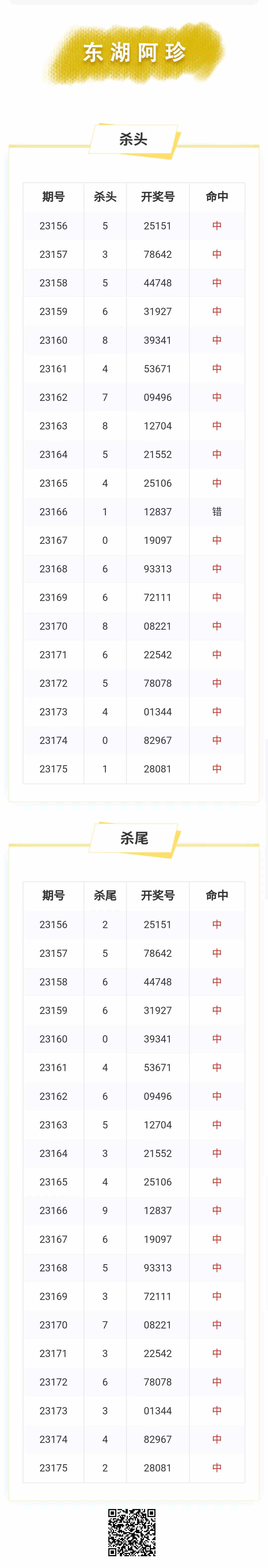 【排列五-176期】本月圈中4次杀头尾,杀头尾近10中9;上期杀头尾中