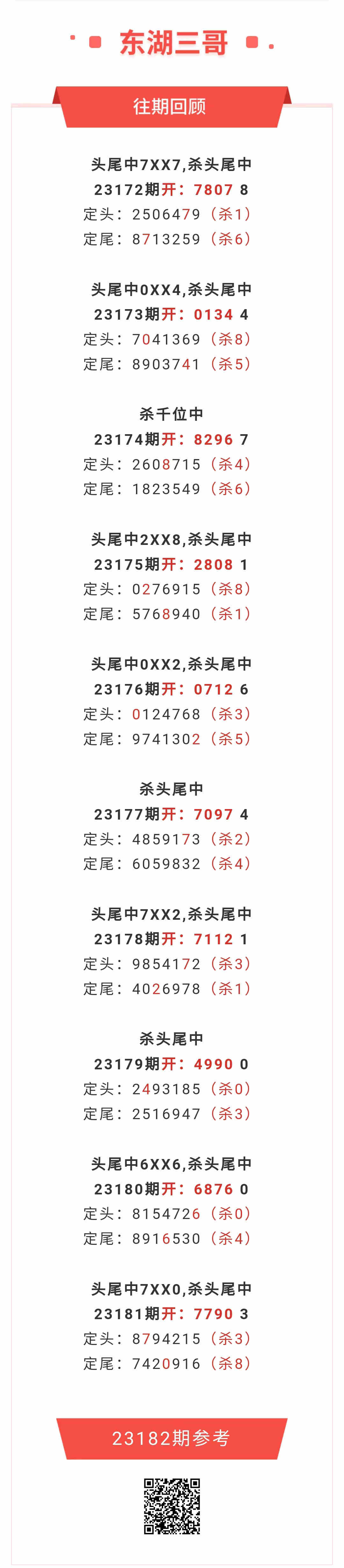 【排列五-182期】本月圈中7次头尾,头尾近10中7;上期头尾中7XX0,杀头尾中