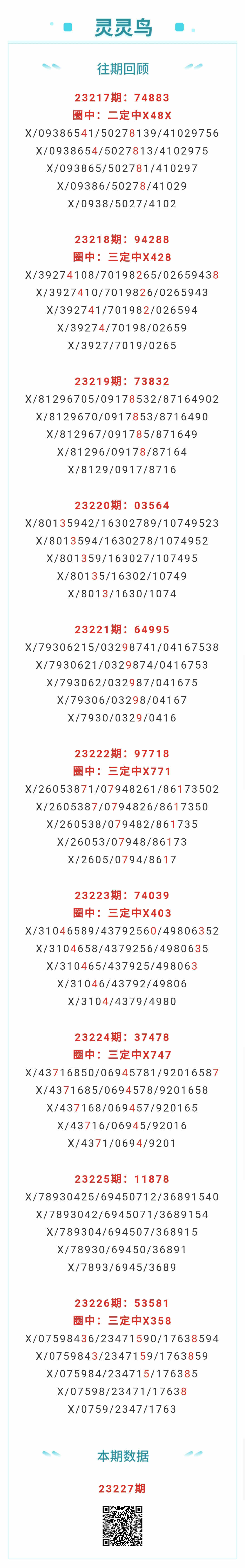 【排列五-227期】本月圈中12次三定,三定近10中5;上期三定中X358