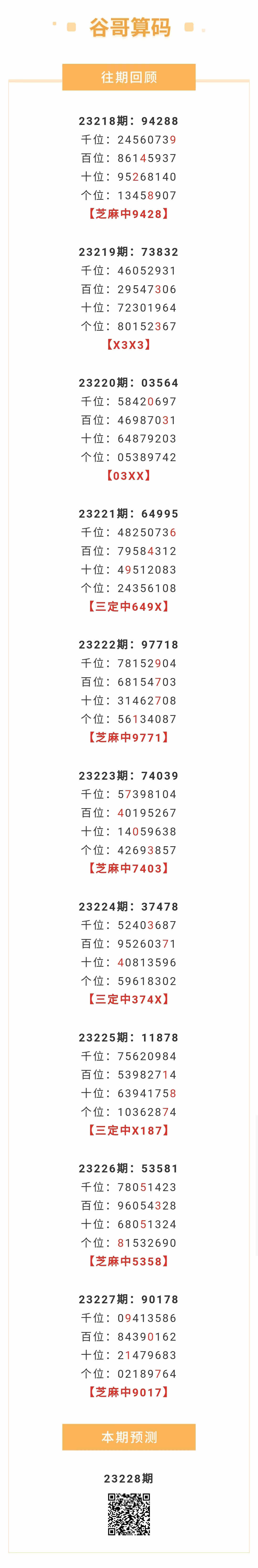 【排列五-228期】本月圈中13次芝麻,芝麻近10中5;上期芝麻中9017