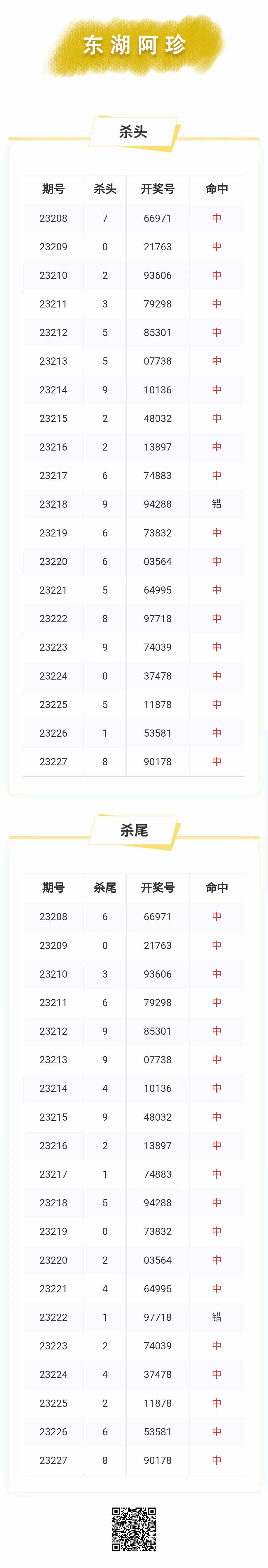 【排列五-228期】本月圈中22次杀头尾,杀头尾近10中8;上期杀头尾中