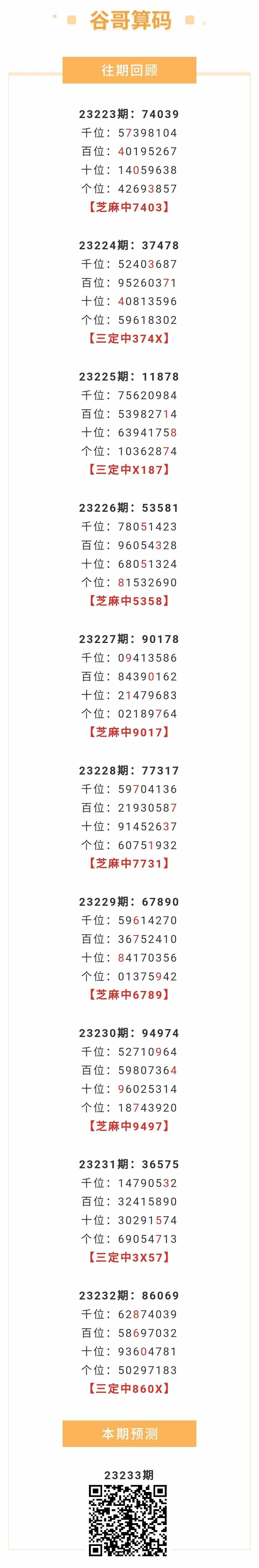 【排列五-233期】本月圈中16次芝麻,芝麻近10中6;上期三定中860X