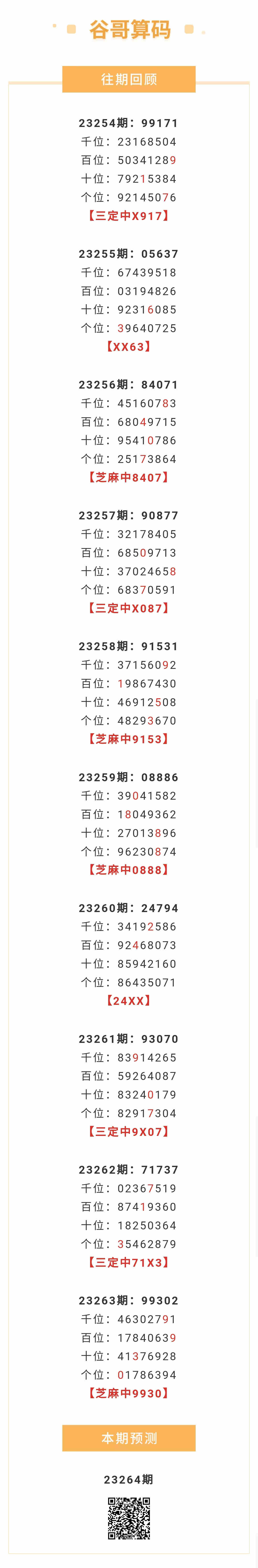 【排列五-264期】本月圈中1次芝麻,芝麻近10中4;上期芝麻中9930