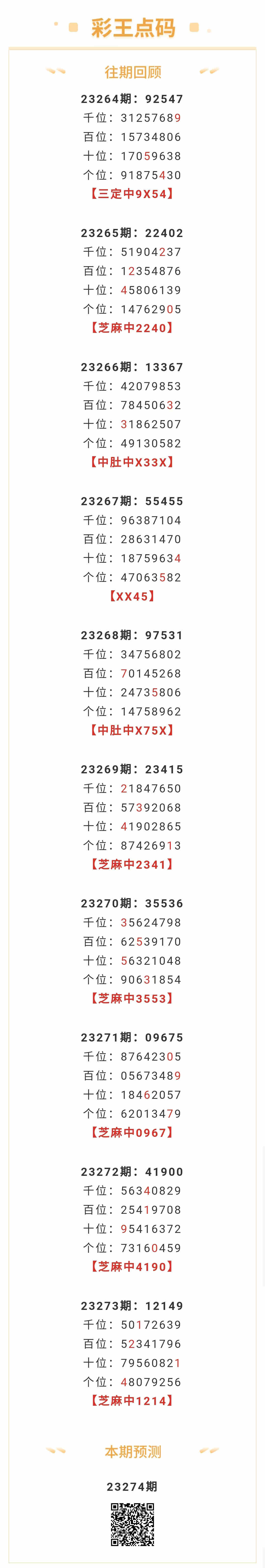 【排列五-274期】本月圈中6次芝麻,芝麻近10中6;上期芝麻中1214