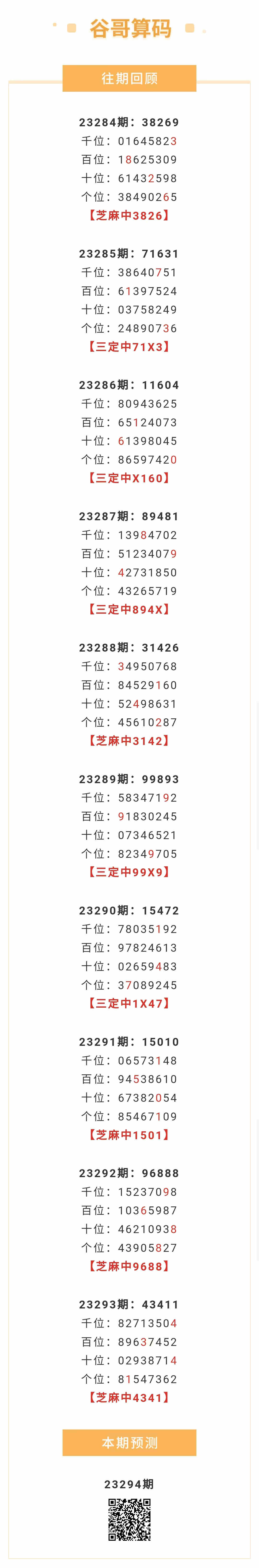 【排列五-294期】本月圈中3次芝麻,芝麻近10中5;上期芝麻中4341
