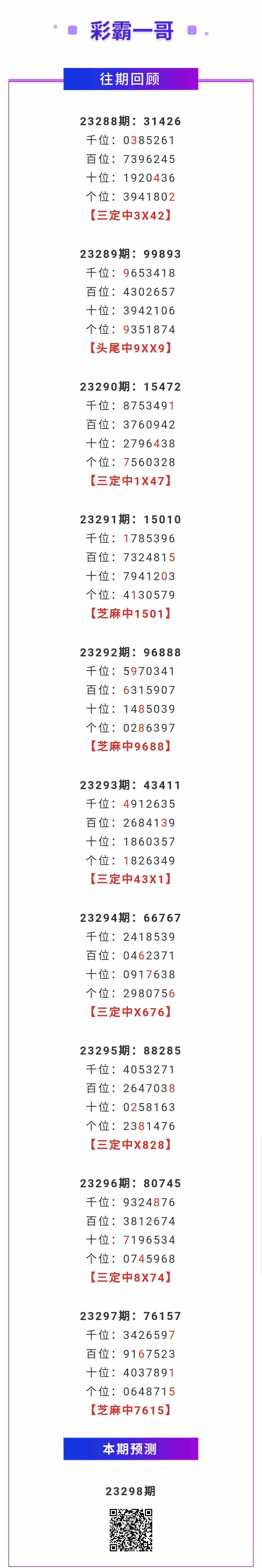 【排列五-298期】本月圈中3次芝麻,芝麻近10中3;上期芝麻中7615