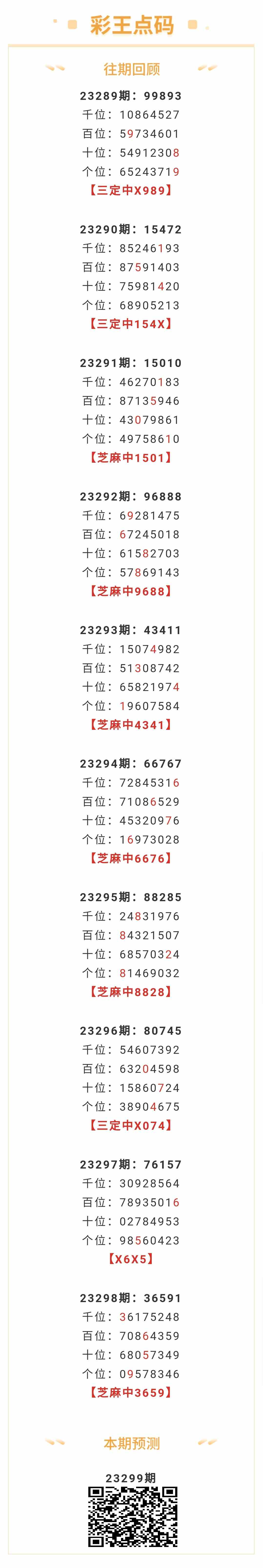 【排列五-299期】本月圈中6次芝麻,芝麻近10中6;上期芝麻中3659