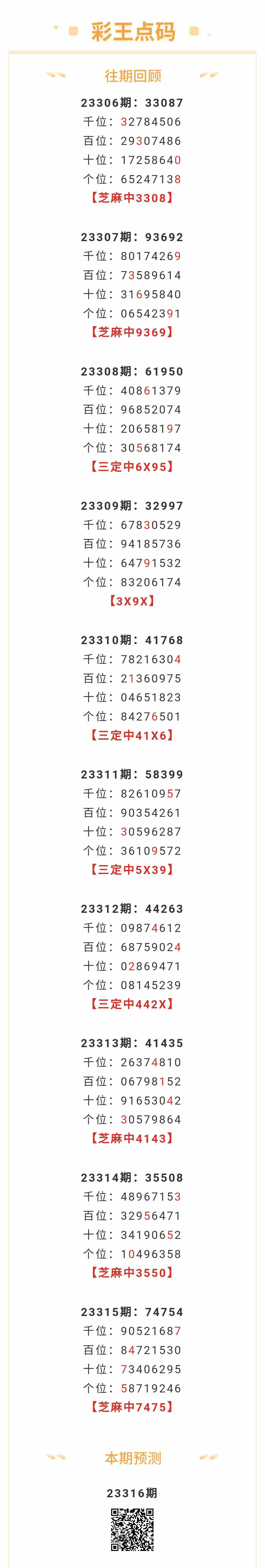 【排列五-316期】本月圈中12次芝麻,芝麻近10中5;上期芝麻中7475