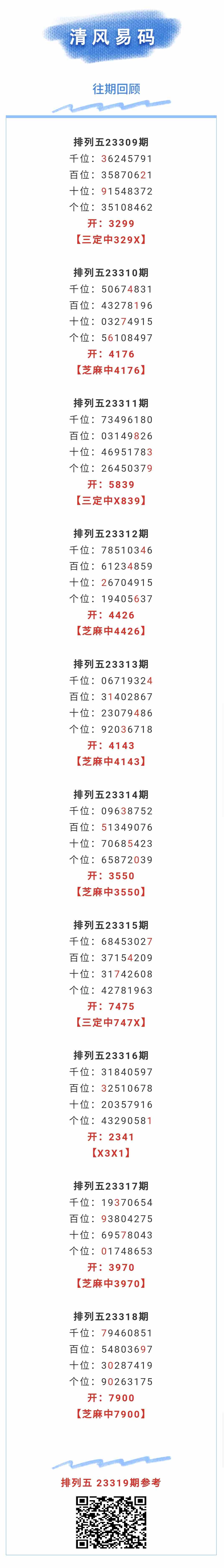 【排列五-319期】本月圈中9次芝麻,芝麻近10中6;上期芝麻中7900