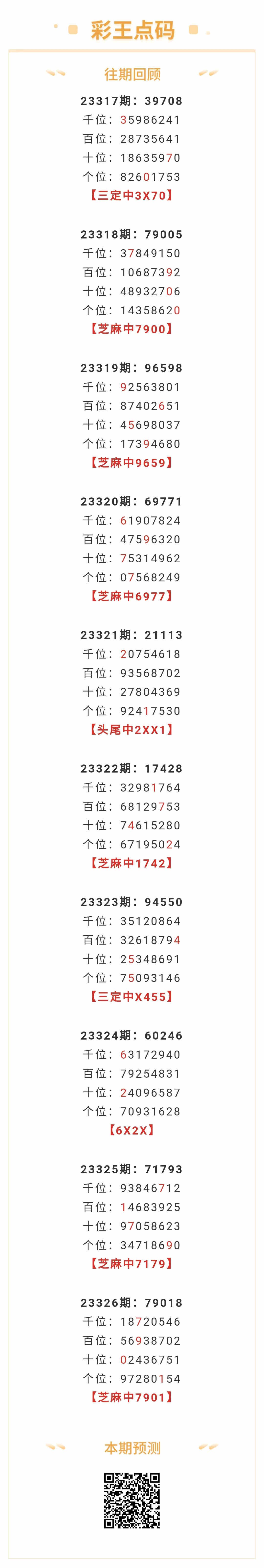 【排列五-327期】本月圈中3次芝麻,芝麻近10中6;上期芝麻中7901