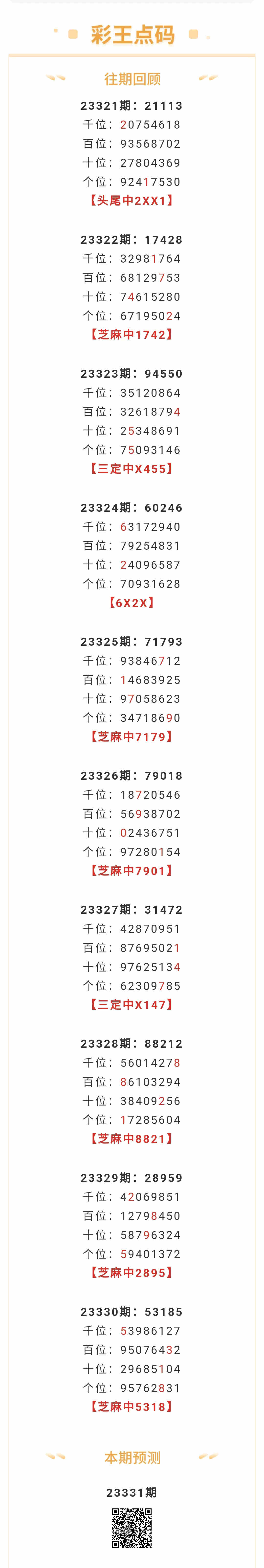 【排列五-331期】本月圈中6次芝麻,芝麻近10中6;上期芝麻中5318