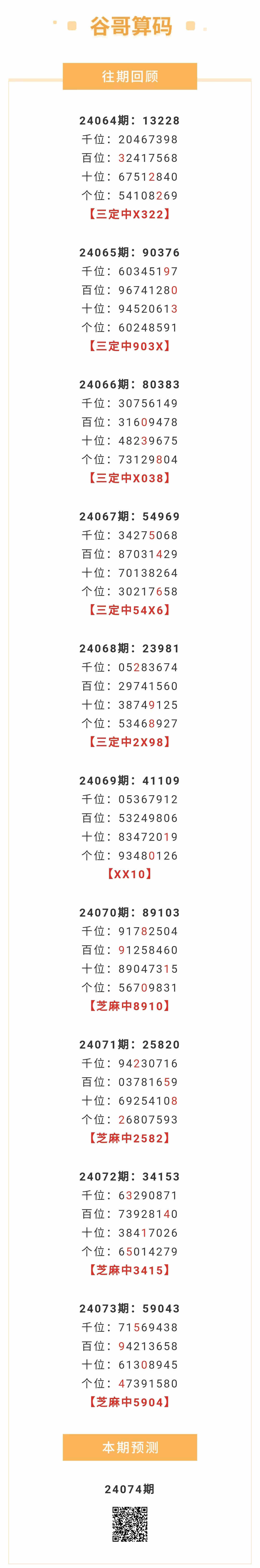 【排列五-074期】本月圈中9次芝麻,芝麻近10中4;上期芝麻中5904