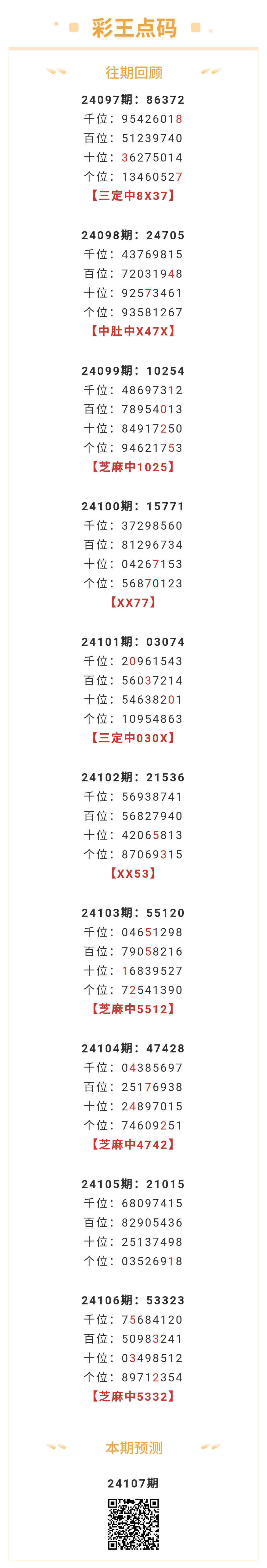 【排列五-107期】本月圈中9次芝麻,芝麻近10中4;上期芝麻中5332