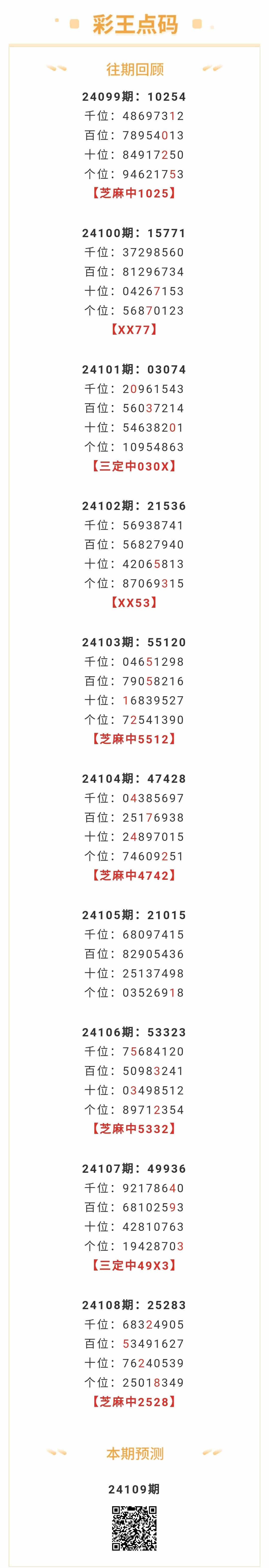 【排列五-109期】本月圈中10次芝麻,芝麻近10中5;上期芝麻中2528