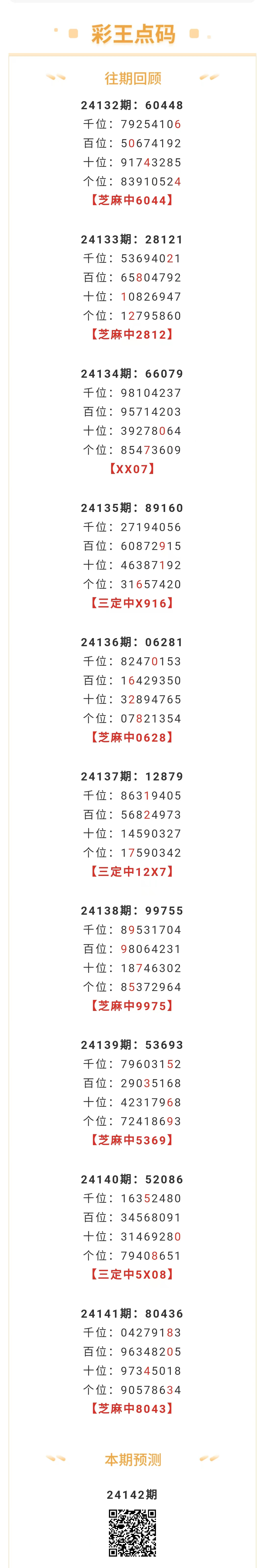 【排列五-142期】本月圈中12次芝麻,芝麻近10中6;上期芝麻中8043