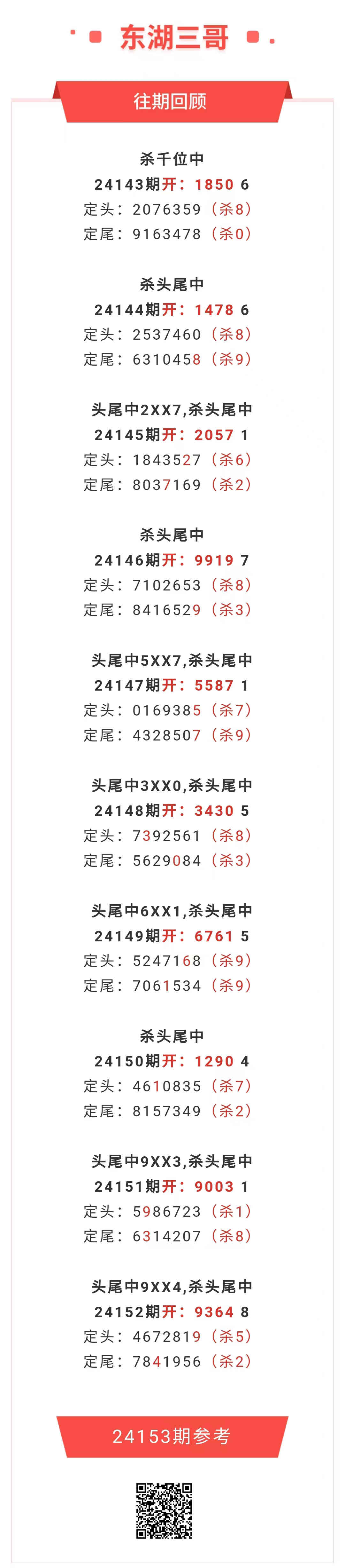【排列五-24153期】本月圈中6次头尾,头尾近10中6;上期头尾中9XX4,杀头尾中
