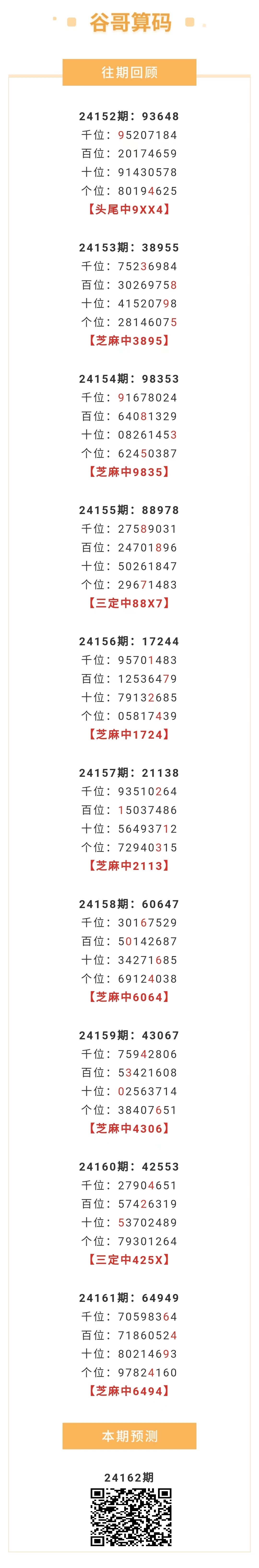【排列五-162期】本月圈中11次芝麻,芝麻近10中7;上期芝麻中6494