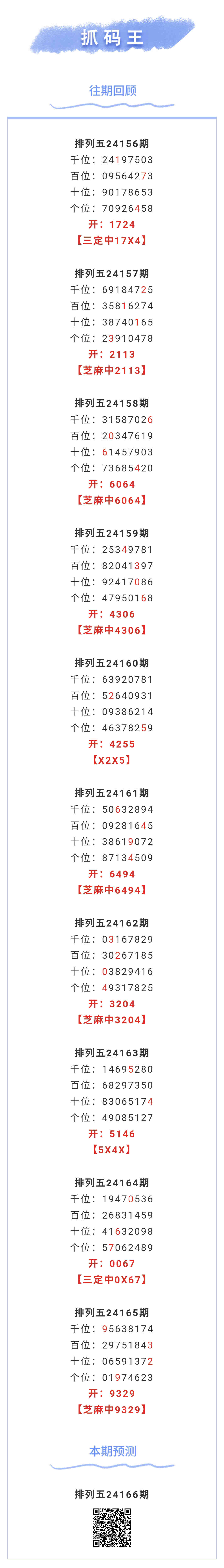 【排列五-166期】本月圈中10次芝麻,芝麻近10中6;上期芝麻中9329