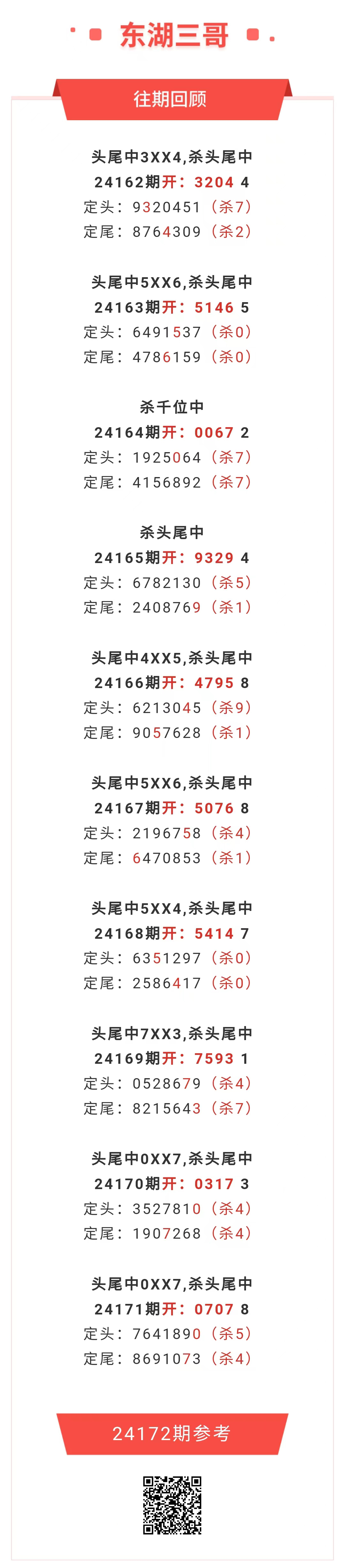 【排列五-24172期】本月圈中17次头尾,头尾近10中8;上期头尾中0XX7