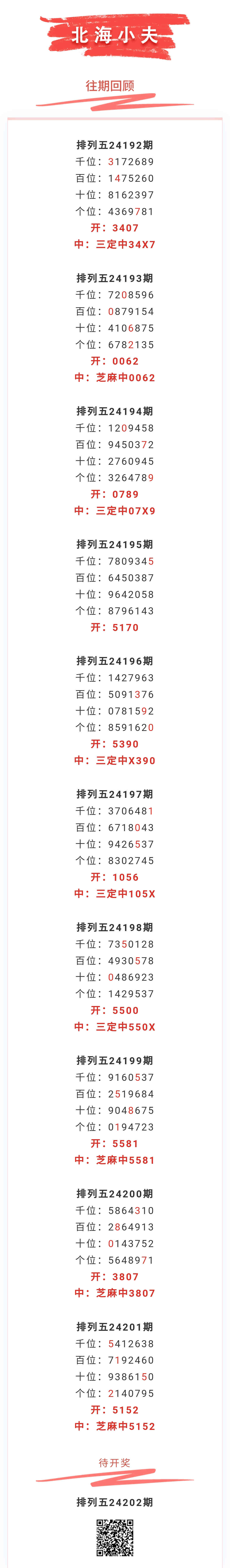 【排列五-202期】本月圈中10次芝麻,芝麻近10中4;上期芝麻中5152