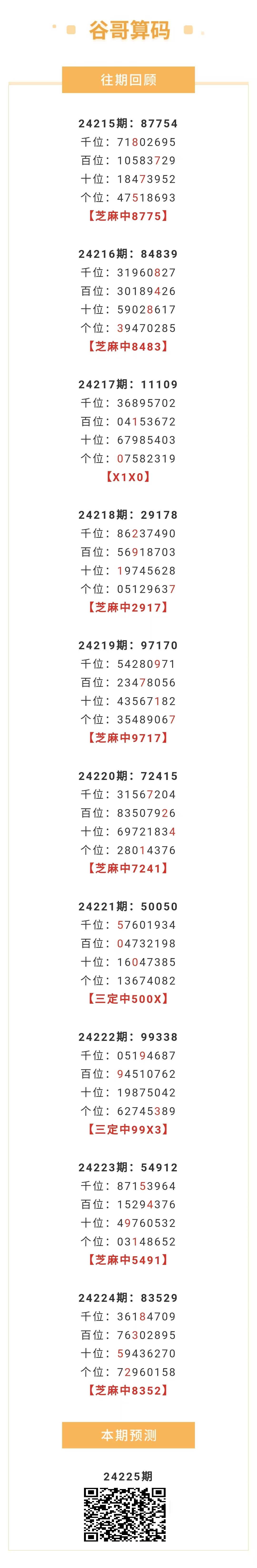 【排列五-225期】本月圈中13次芝麻,芝麻近10中7;上期芝麻中8352