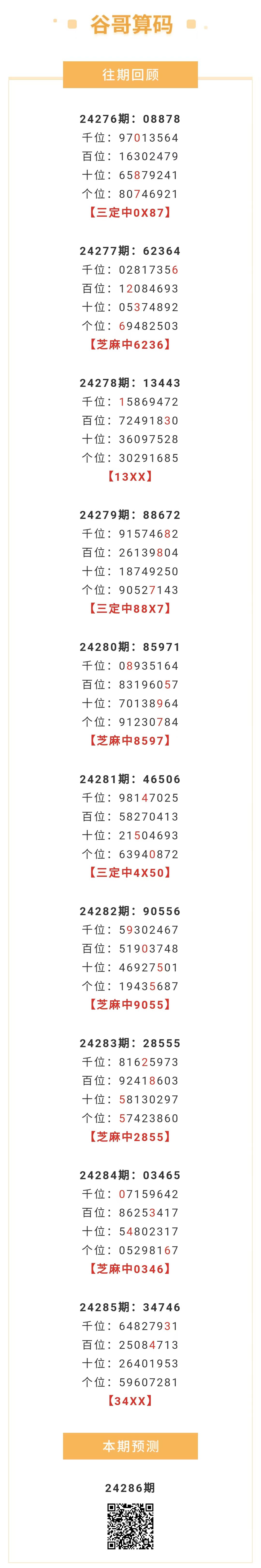 【排列五-286期】本月圈中8次芝麻,芝麻近10中5;上期34XX