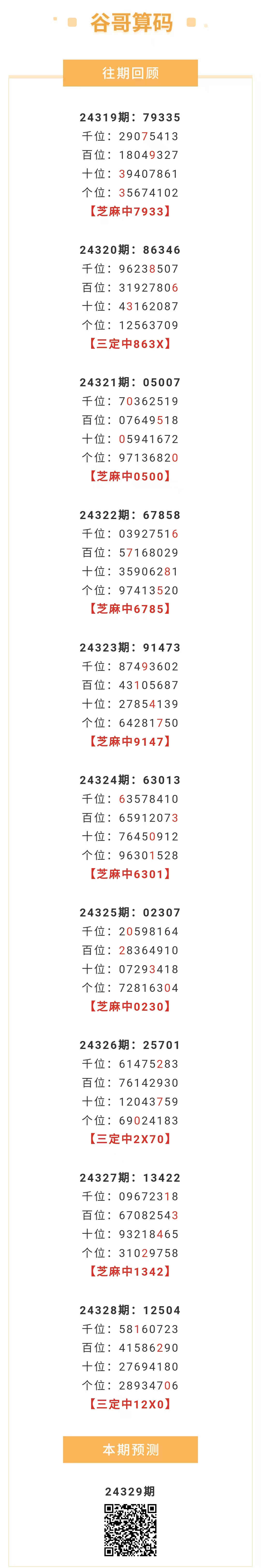 【排列五-329期】本月圈中5次芝麻,芝麻近10中7;上期三定中12X0