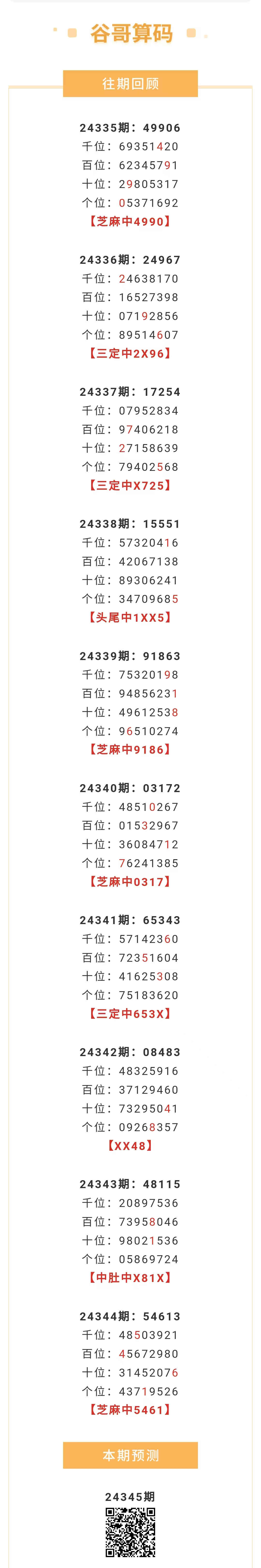 【排列五-345期】本月圈中11次芝麻,芝麻近10中4;上期芝麻中5461