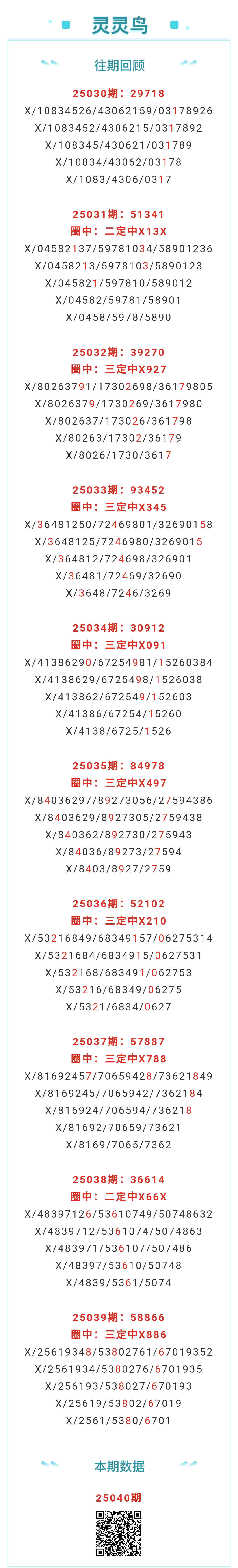 【排列五-040期】本月圈中9次三定,三定近10中7;上期三定中X886