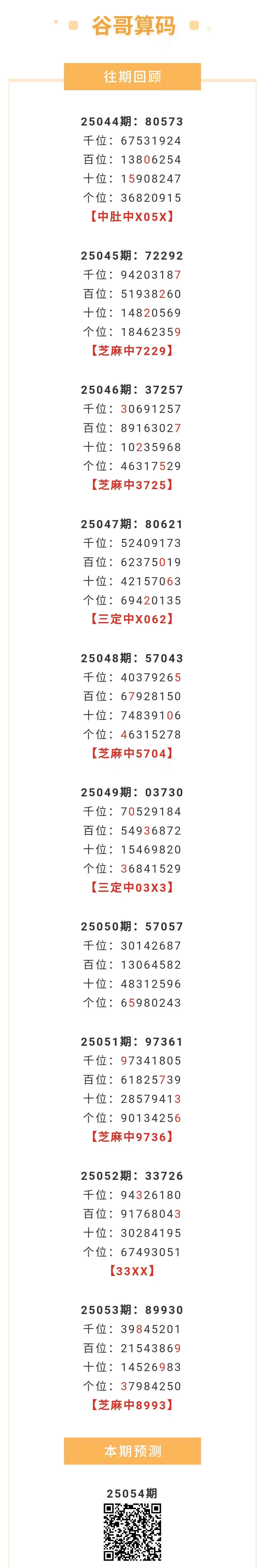【排列五-25054期】本月圈中2次芝麻,芝麻近10中5;上期芝麻中8993