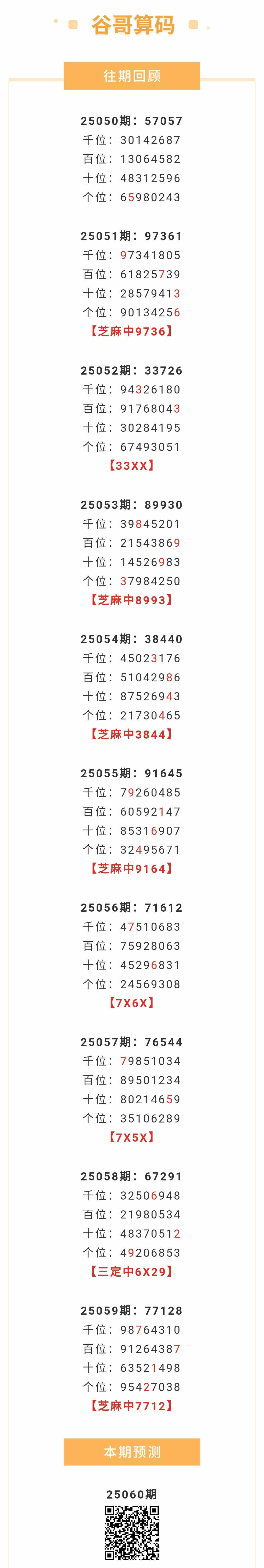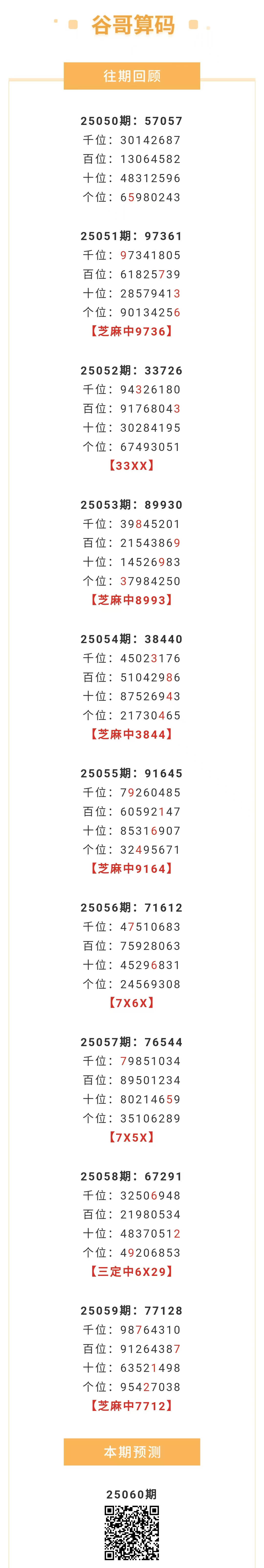 【排列五-060期】本月圈中5次芝麻,芝麻近10中5;上期芝麻中7712