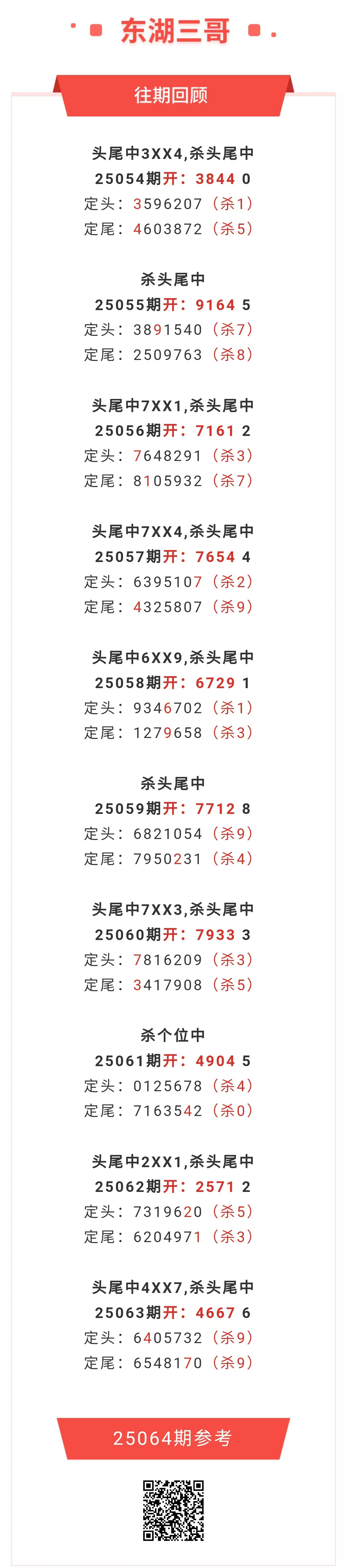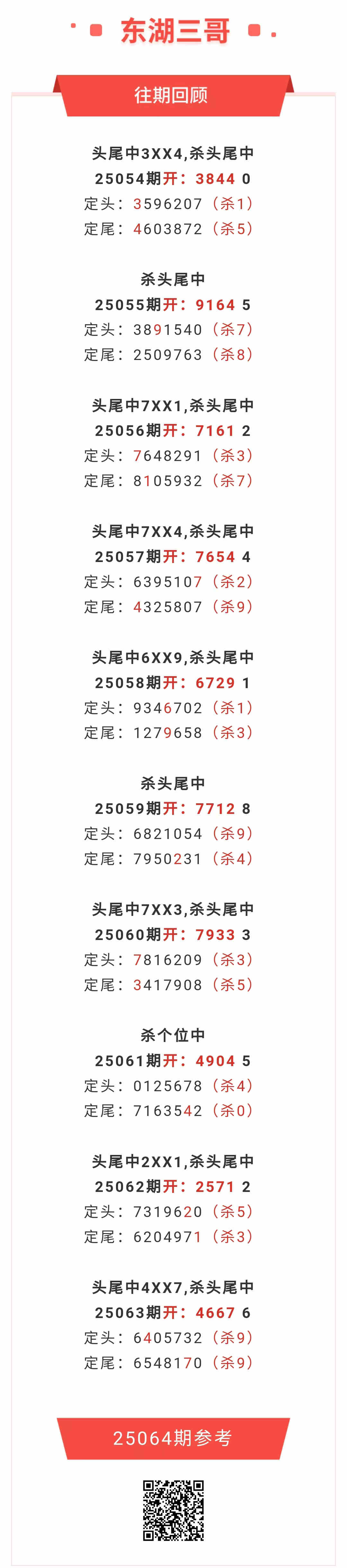 【排列五-064期】本月圈中11次一四,一四近10中7;上期一四中4XX7