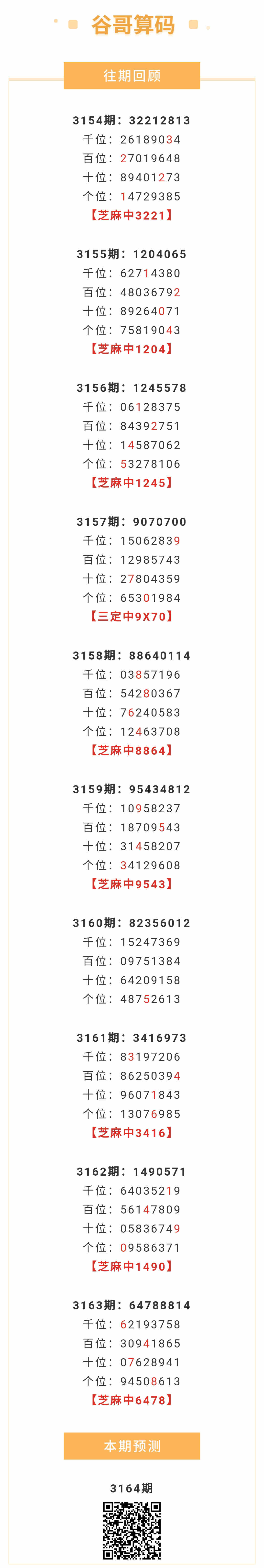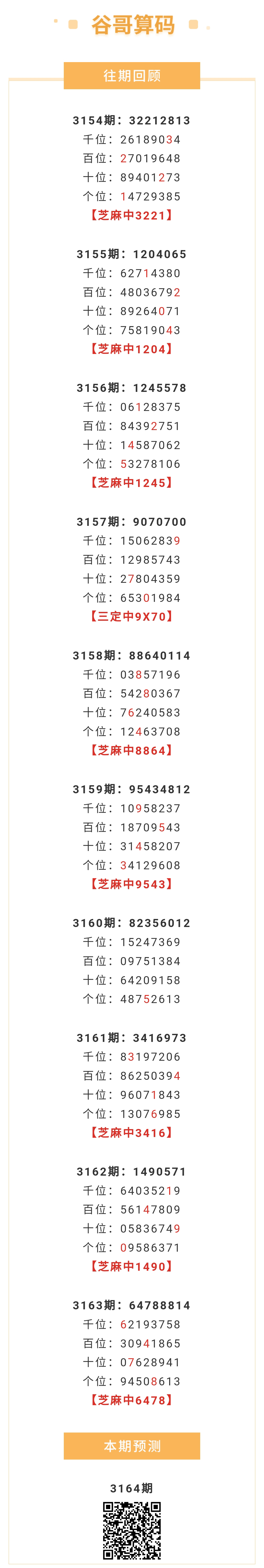 【七星彩-3164期】本月圈中7次芝麻,芝麻近10中8;上期芝麻中6478