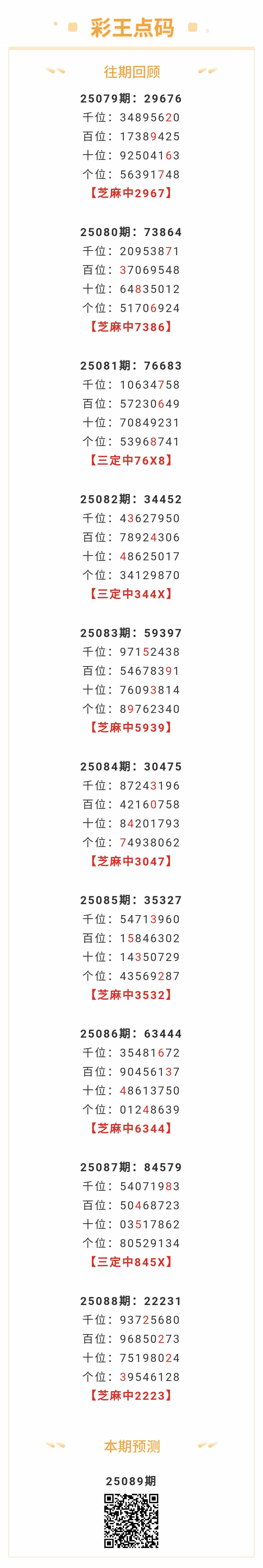 【排列五-089期】本月圈中5次芝麻,芝麻近10中7;上期芝麻中2223