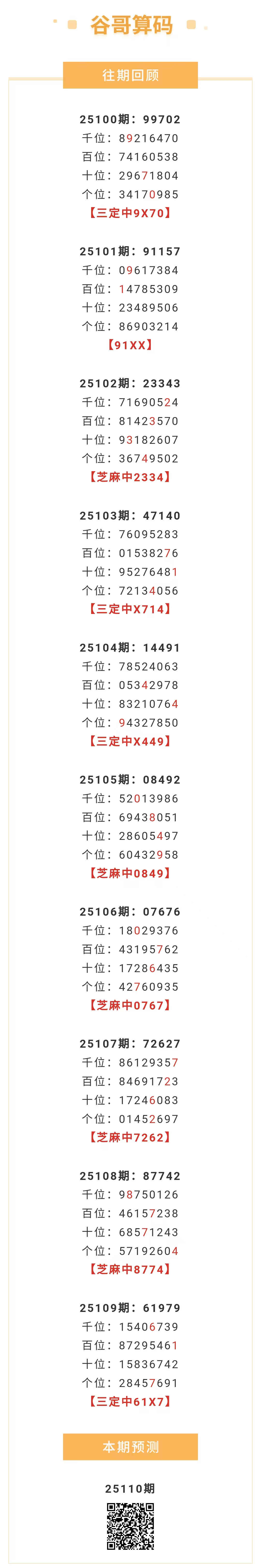 【排列五-110期】本月圈中13次芝麻,芝麻近10中5;上期三定中61X7
