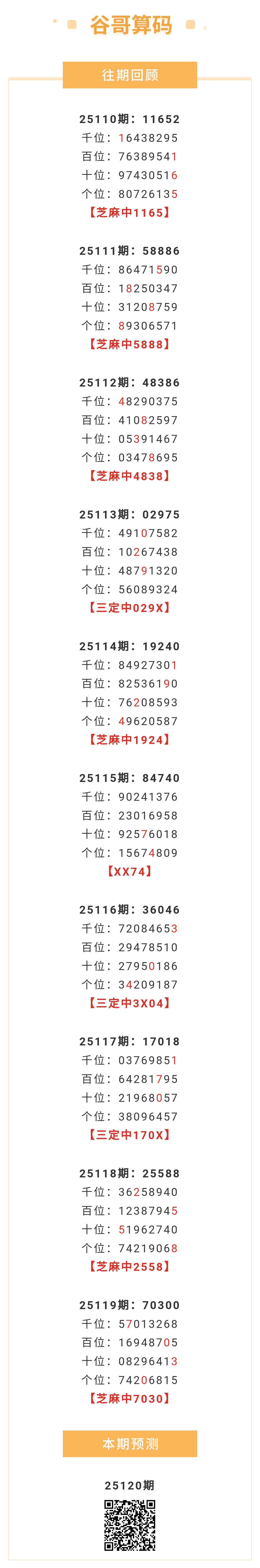 【排列五-120期】本月圈中5次芝麻,芝麻近10中6;上期芝麻中7030