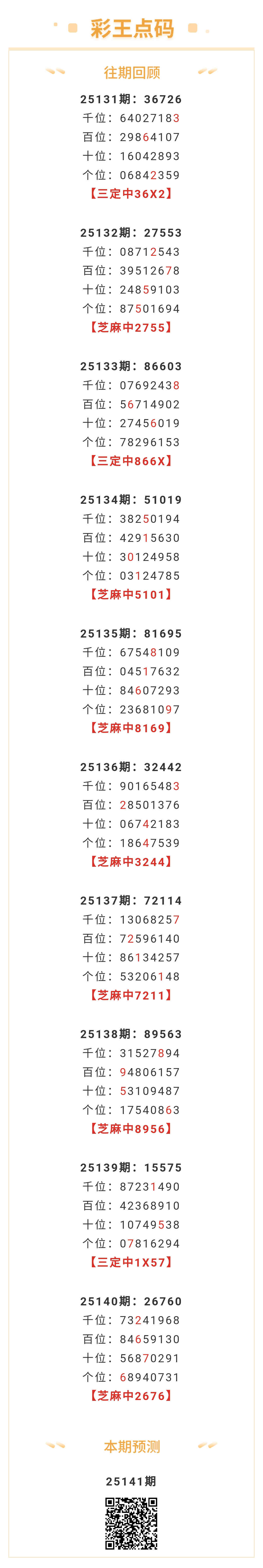 【排列五-141期】本月圈中15次芝麻,芝麻近10中7;上期芝麻中2676