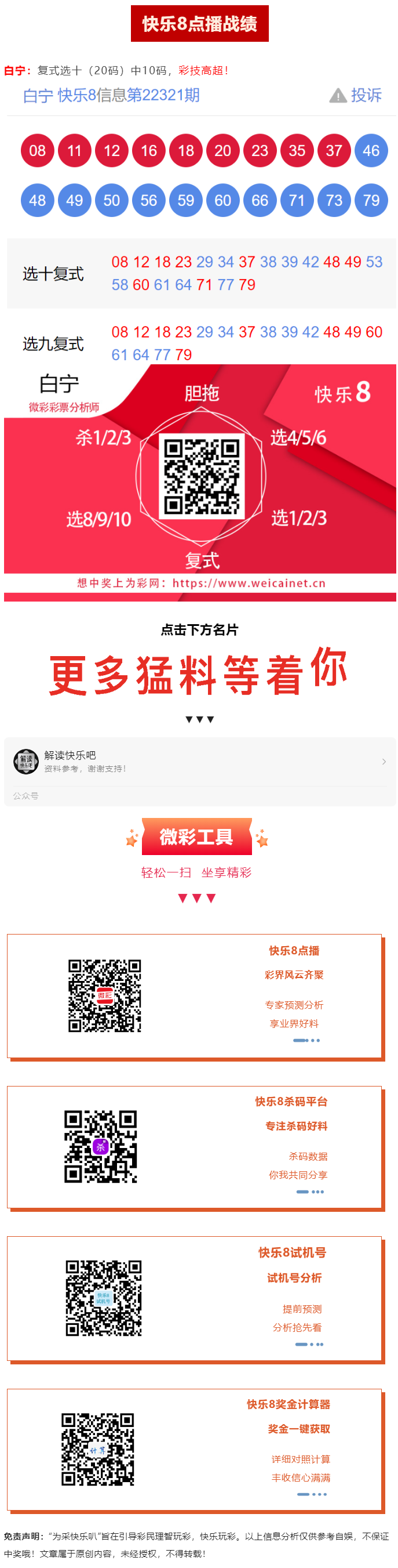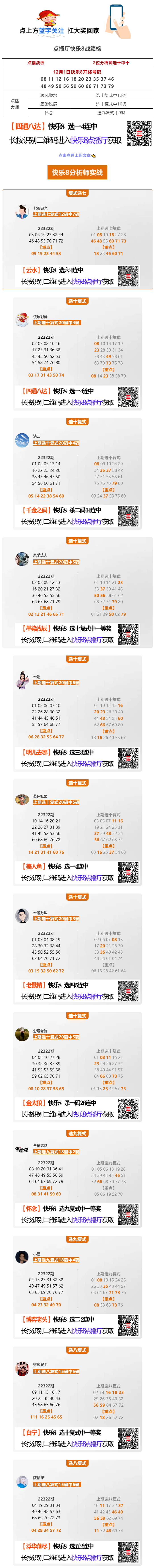 【快乐8精选】快乐8“顺风顺水”选十复式20码中12码!