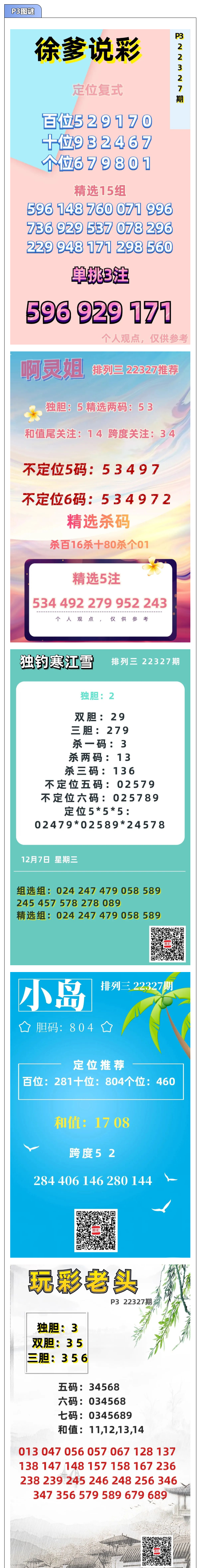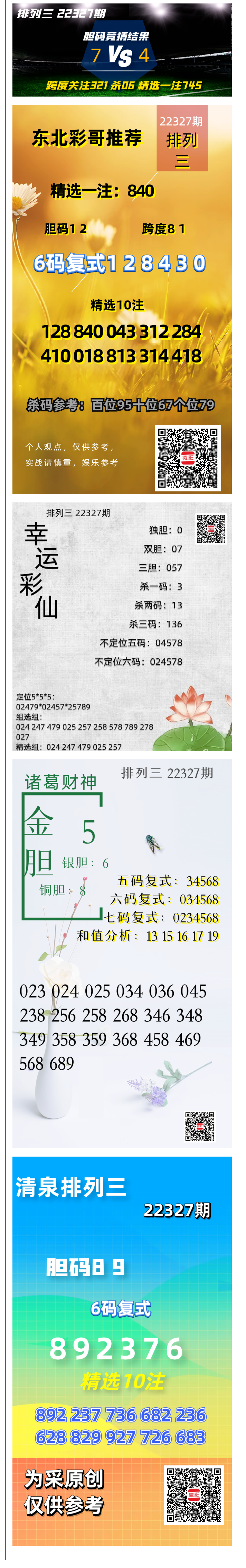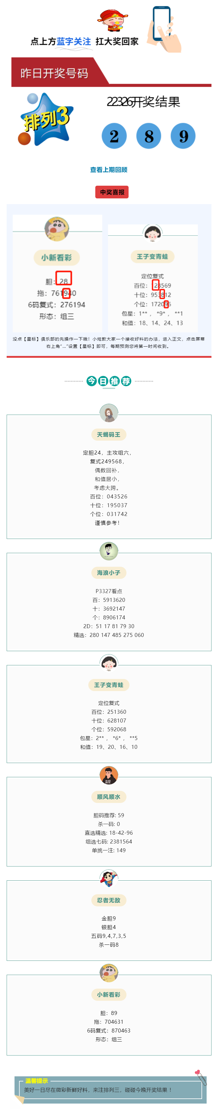 排列三“小新看彩”胆拖中289!