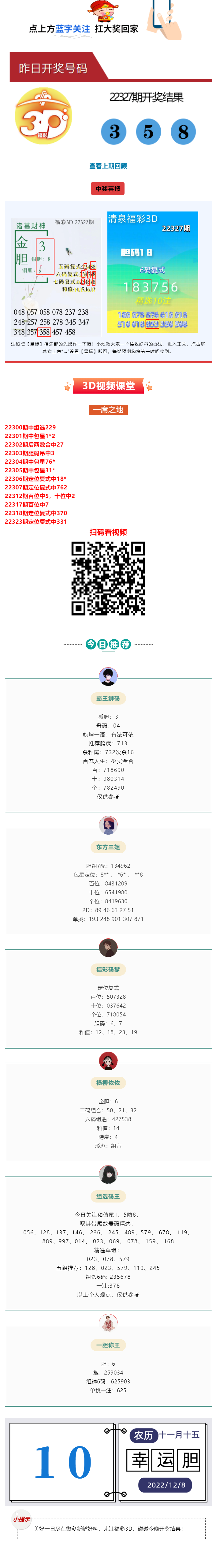 福彩3D“诸葛财神”17注精选中358!