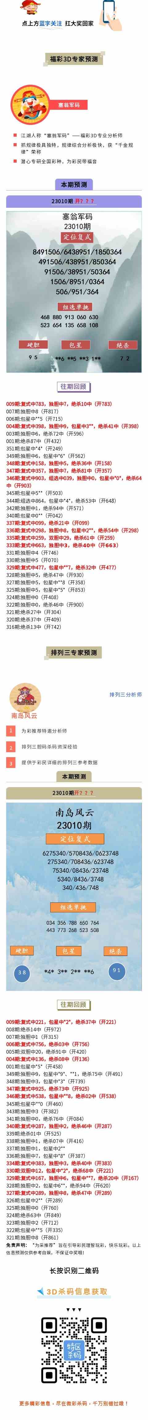 “塞翁军码”“南岛风云”双双齐中复式!