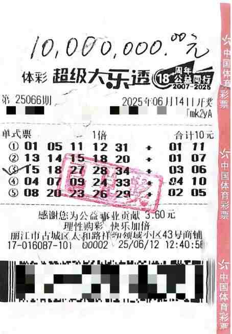编者按:6月14日晚间,体彩大乐透第25066期开奖,来自云南丽江70后张大哥(化姓)买的大乐透彩票中了1000万大奖,但中奖彩票放在衣服里,不小心被张大哥扔进洗衣机。好在票面信息虽饱经沧桑,但关键信息依然清晰可辨,经过体彩中心专业兑奖设备的验证,最终确认这张“水洗包浆”的彩票有效,张大哥顺利兑走这笔奖金。