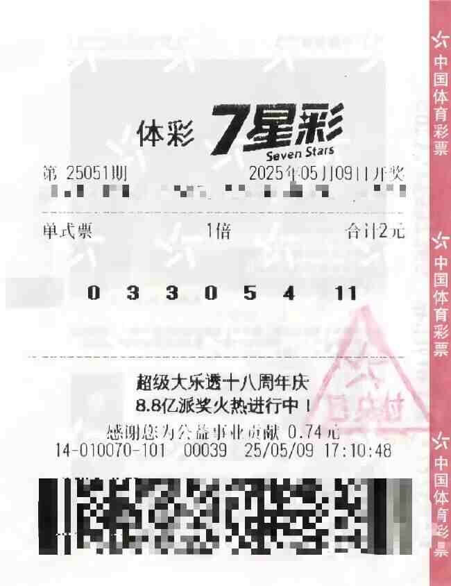 正是这看似随意的“零钱购彩”,意外中得5月9日的7星彩第25051期一等奖。面对惊喜,王先生笑称:“这是最特别的‘520’礼物!”谈及奖金规划,他表示将用于小孩的教育基金及生活质量的改善,同时也会继续支持体彩事业。