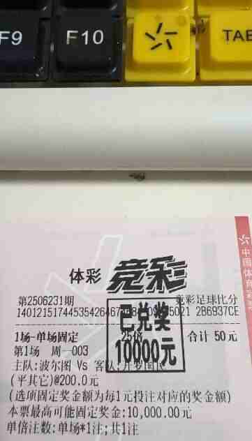 彩民单场固定比分50元揽1万大奖