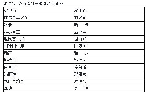 根据中国足球彩票6月竞猜场次安排,我中心制订了芬超部分竞猜球队队名全简称(具体附下)。