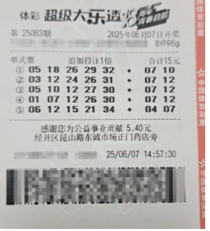 近日,吉林的彩民许先生凭借一张仅15元的投注单,幸运中得超级大乐透1408万元大奖!根据许先生的介绍,中奖号码是通过机选生成的,觉得这组号码不错,于是便坚持守号了三年多。此前,他的最大奖金仅为200多元。中奖后,许先生按照规定缴纳了281万多元的个人所得税。此次中奖发生在6月7日的超级大乐透第25063期开奖,前区号码为05、18、26、29、32,后区为07、10。全国共开出11注一等奖,其中一注追加投注一等奖被长春市经开区的2201058127体彩代销点幸运收入囊中。
