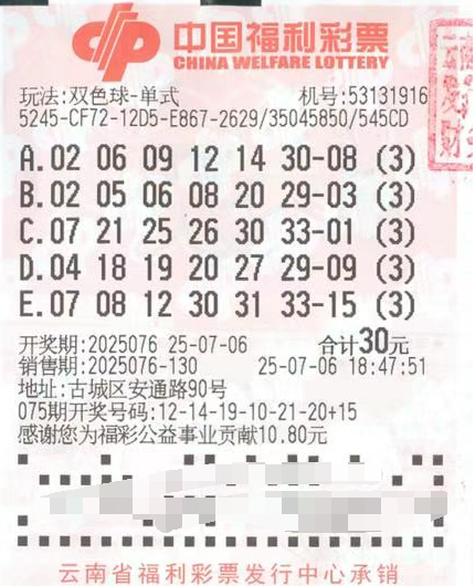 7月6日,双色球第2025076期开奖,全国共开出4注一等奖,单注奖金为740万元,其中3注被云南省丽江市的彩民幸运中得。经过核实,中奖彩票是一张30元的单式倍投票,奖金总额高达2220万元。近日,大奖得主刘先生(化名)在家人的陪同下,前往省福彩中心领取奖金。