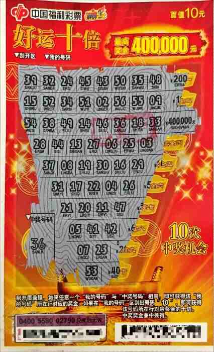 经查验,这是一张“好运十倍”刮刮乐,中奖40万元。