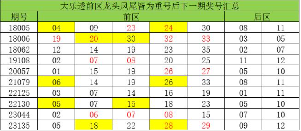 本周六大乐透将进行8月份的首期开奖,而随着上期龙头凤尾皆为重号现身,该形态的热度能否延续呢?为此小编特意整理了最近10次大乐透前区龙头和凤尾皆为重号后的下期奖号,整理规律为彩民选号提供思路。