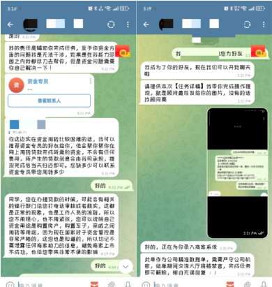 刘女士根据指示下载了相关APP,随后刘女士又被拉入一个名为“xx彩民群”的陌生群聊。群内充斥着大量刷单返利的消息,刘女士看着不免心动起来。不久之后,群内一位号称“资金专员”的顾问联系刘女士,自称能“一对一”辅导她完成相关任务并获得返利。